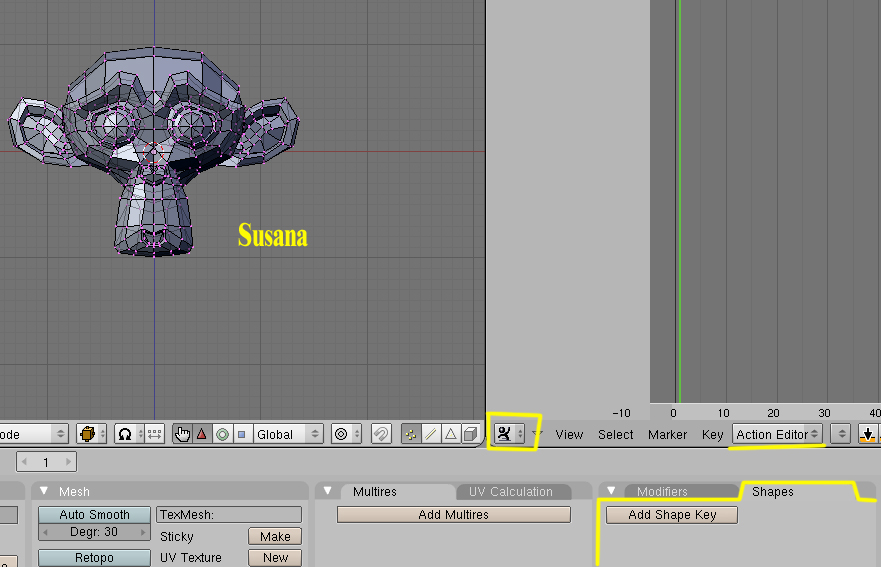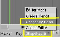 Lo primero que vamos a hacer, es cambiar el Action Editor a ShapeKey Editor; esto es a partir de la versión 2.48.