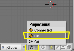 La conectamos con la opción On. Y cuando seleccionamos un vértice y presionemos la letra G, se crea un círculo, que arrastra a los vértices que están dentro de ese círculo. El cual podemos modificar con la rueda del ratón.