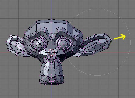 Para hacer el movimiento de vértices, voy a utilizar también una herramienta, la cual cree un círculo de influencia, para mover los vértices cercanos.