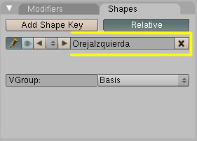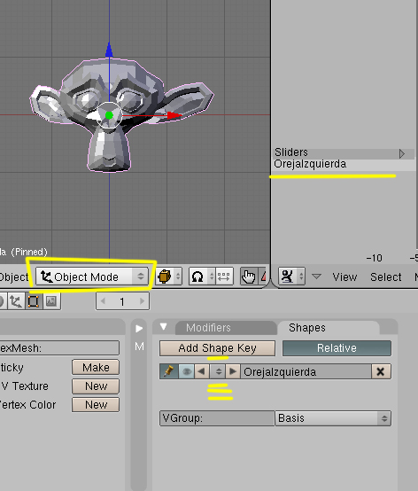 Volvemos a Object Mode y podemos seguir haciendo otras deformaciones, y poniéndoles nombre. Yo he puesto dos más, en la barbilla y en la cabeza. (No las pongo porque me quedo sin espacio en disco).