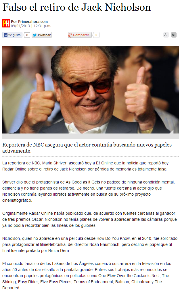 Jack nicholson anuncia su retiro?