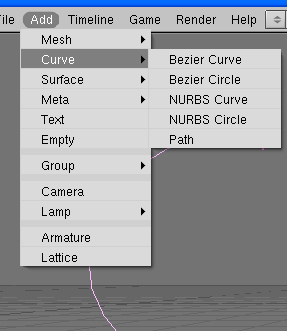Primero vamos a insertar una curva Bézier. Add>Mesh>Bézier Curve.