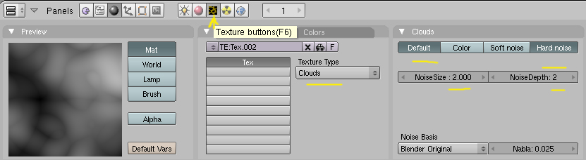 También le vamos a poner una textura. F6 seleccionamos Clouds y los valores de la imagen.