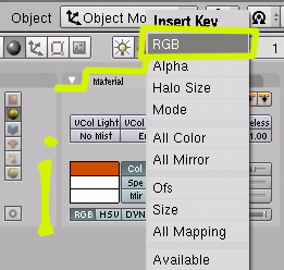 Se trata de elegir el primer color que queremos en el material, luego estando en la zona de botones (no en la pantalla 3D), presionamos la letra I y elegimos RGB.
