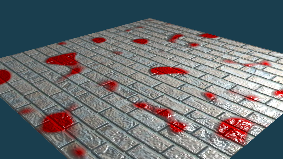 En Blender casi todo se puede hacer de unas cuantas maneras. Podrías ponerlo en modo Vertex Paint o en texture paint, y pintar la textura con lo que quieras dentro de Blender. O sacar la malla a programas de dibujo como Gimp. O poner otra textura de imagen con sangre y mezclarla.