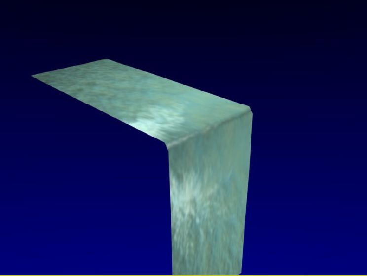 Para conseguir una textura procedural animada por un Empty y animada por IPO CurveLo primero es crear el modelo, en este caso representa un río y la parte en que cae en cascada. Podemos partir de un objeto más o menos como en la imagen.