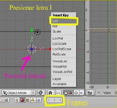 Ahora seleccionamos el EMPTY y estando en el Frame 1, presionamos la letra I y luego seleccionamos LOC.