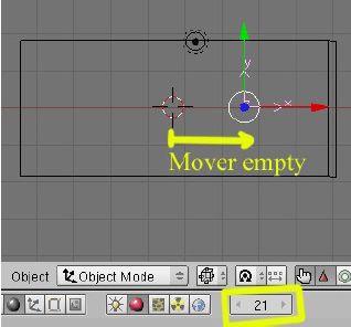 Una vez ya tenemos seleccionado el frame 21 vamos a mover el Empty. Hay que pensar, que mientras más se mueva el Empty de.