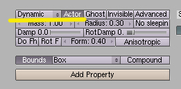 Al vehículo le he puesto como actor dinámico y le he colocado los valores de Motion en las flechas del teclado. O sea, funciona presionando flecha arriba y las flechas para derecha e izquierda. El efecto se puede aumentar desde 0.001 a 1.000. Yo en este caso he puesto 0.410.