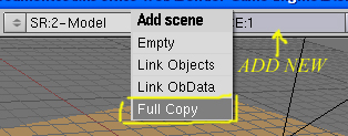 Para crear una escena nueva, presionamos en las flechas que tiene en su izquierda y seleccionamos AD NEW y Full Copy.
