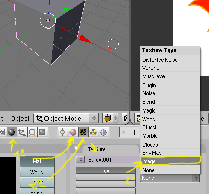 Ahora cambiamos a Object Mode, creamos un material nuevo y luego una textura nueva de tipo Image.