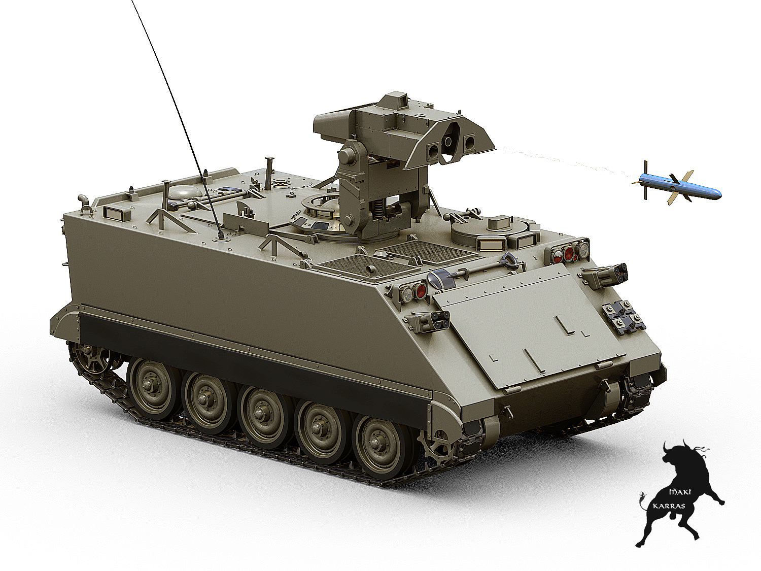 Fíjate en las pocas versiones que hay en el TurboSquid de él. Ya estoy con la versión antitanque M-901 HammerHead con una torre TUA que ya tenía modelada. Es una mina éste modelo.