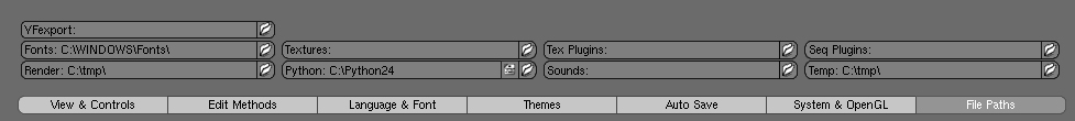 9ª Temp: Este es el archivo temporal, donde se guardan las copias que Blender hace cada cierto tiempo y que normalmente es un archivo que crea Blender al instalarse, llamado temp y que suele estar en el disco principal C:\. Yo personalmente lo coloco en mí archivo tmp de Windows, pero podéis elegir donde lo queréis colocar. Aquí lo coloco en temp.