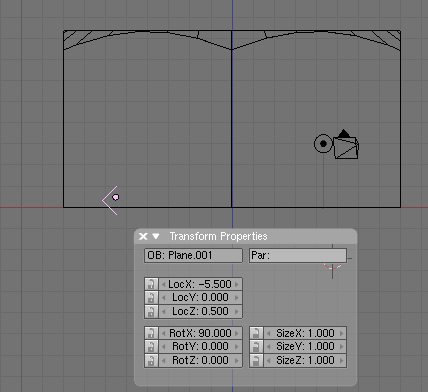 En vista frontal crear un plane Add>Plane y mirar que esté centrado (N) y coordenadas a =0.000 y reducir el plane a 0.5 de su valor (S+CTRL), volver a comprobar que está centrado con las coordenadas a 0.000.