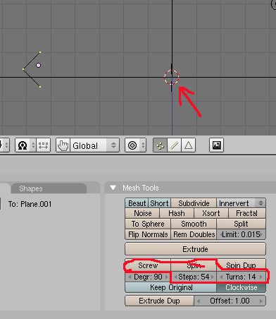 En Edit Mode presiona F9 y en la ventana Mesh Tools introduce los siguientes valores: Steps: 54 y Turns: 14, y luego presionar Screw y ya tienes la rosca hecha. Ahora vamos a quitarle algunos vértices que sobran, selecciona todos los vértices (letra A) y luego W y Remove Doubles te dirá la cantidad que elimina (en mi caso 703).