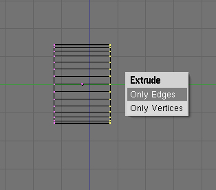 Una vez seleccionado presionamos la letra E y el botón Extrude>Only Edges; sin mover el ratón presionamos también S para extruir los vértices en dirección de la cara.