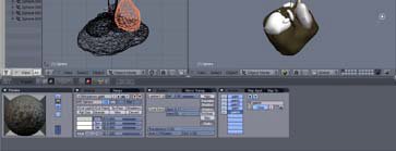 5) Ahora, con el modo Paint Selection (pulsar la tecla B dos veces), seleccionar la zona con más densidad de polígonos cuadrados. Aplicar un valor de 400 a Remove Doubles y volver a subdividir. Se puede repetir este proceso hasta conseguir un buen fractal en el objeto.