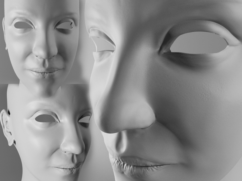 Modelo, ahora un poco de poros, arrugas, romper la simetría y meterle un.