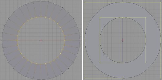 Es hora de empezar a trabajar en la parte superior. Los mezcladores internos de la herramienta encoger no siempre funcionan muy bien o correctamente. Debido a qué este iPod es un modelo simple, podemos utilizar una sencilla combinación de escalado y estirado para crear un primer anillo en la cara superior.