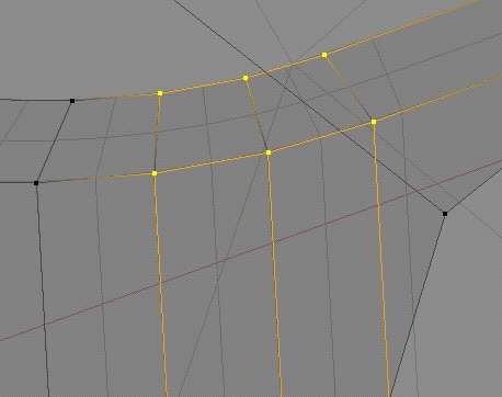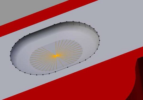 Ahora viene la parte difícil. No podemos llenar todas las caras con [SHIFT + F], porque ello simplemente crearía una enorme cantidad de triangulos que no son adecuados para un buen SDS para la conversación a nURBS en Maya, por ejemplo. Así que tenemos que contar los puntos del anillo del perfil exterior y ver cómo se podría llenar en cuatro caras sin triangulos.