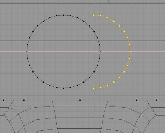 4. Lateral de arriba: Después de haber creado las superficies exteriores, se podría duplicar de nuevo y por separado el interior de un perfil en que modelamos el botón de Reproducción y el On / Of. Después de haber creado un nuevo objeto 3D para él perfil forzar el cursor 3D hasta el centro de la imagen y añadir un anillo con 32 vértices.