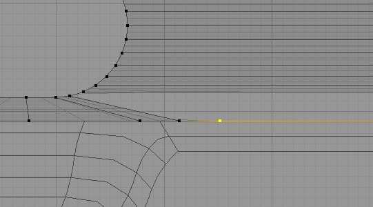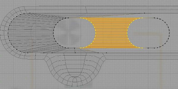 También hemos subdividido el borde que está por encima del botón para construir la geometría en que se necesita construir el agujero para él botón radial más tarde. Esto requiere alguna pre-planificación antes de modelar.