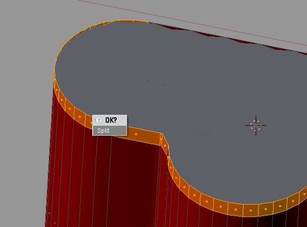 Ahora podemos también rellenar la falta de caras en la ronda de extrusión en una de los tapas. Debido a que el anillo nos obligaría a construir un triángulo en la parte inferior hemos ignorado el centro, conectando todas las caras opuestas y luego cortadas con el aro de corte [CTRL + R].