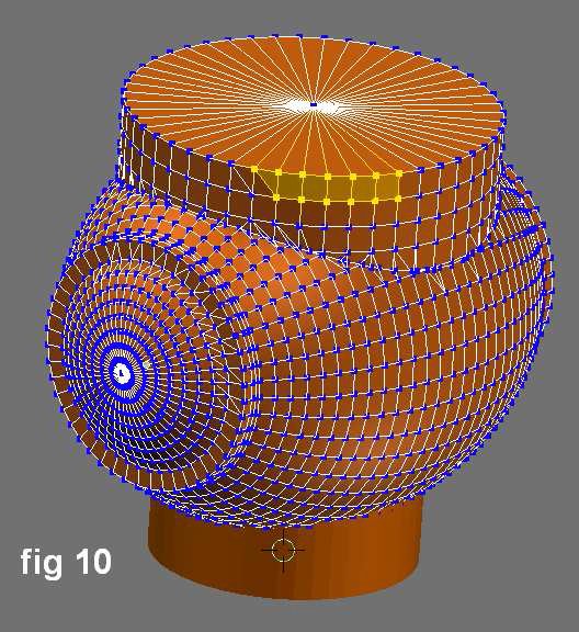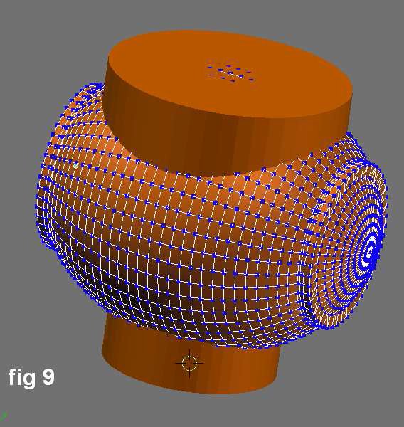 Como muestra la figura 3, el cilindro es subdividido a lo largo de su altura para darle un mayor control sobre la teselación cuando se van agregando más operadores al objeto.