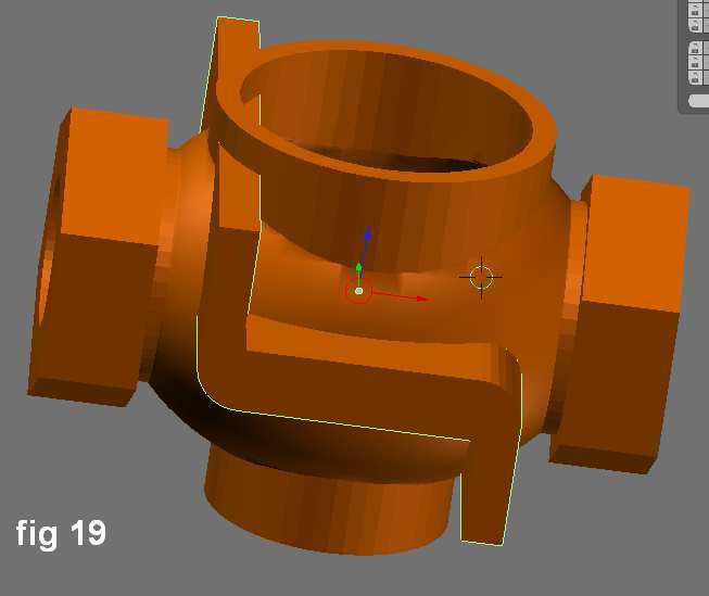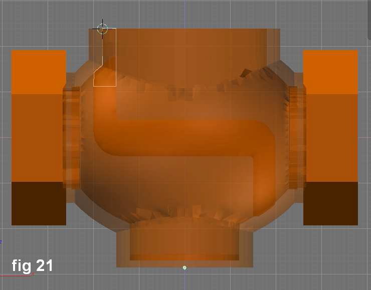 Una sección transversal fue creada por encima de la abertura para agregar más material y espesor a la boca de la valvula con una dona que se muestra con la propiedad X Ray.