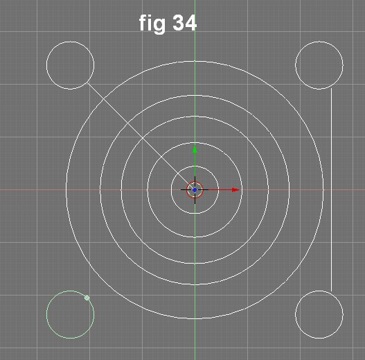 La figura 34 muestra el círculo original (arriba a la izquierda) clonado y el posicionamiento de los clones rotando cada uno en 90 grados con el cursor dentro de otros círculos de referencia.