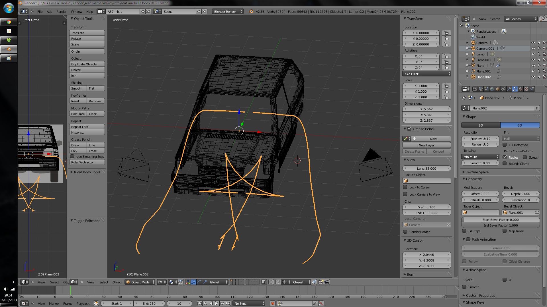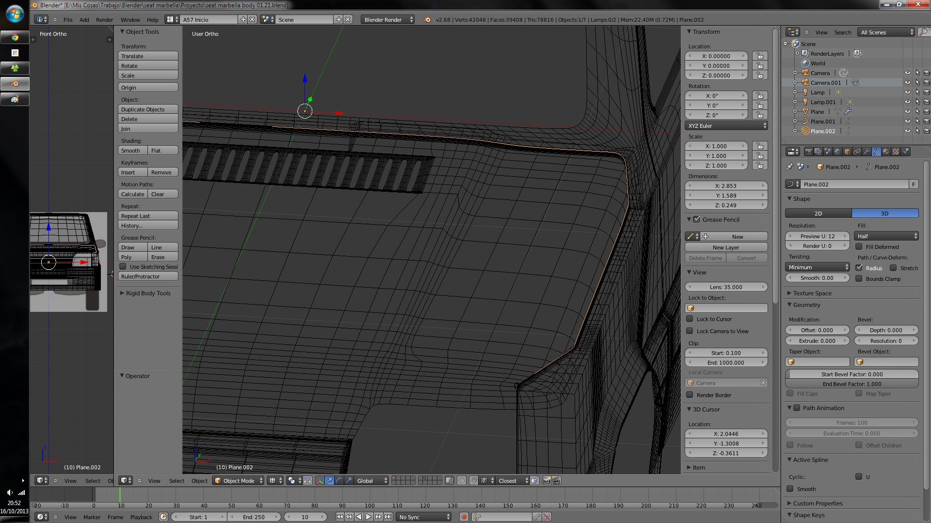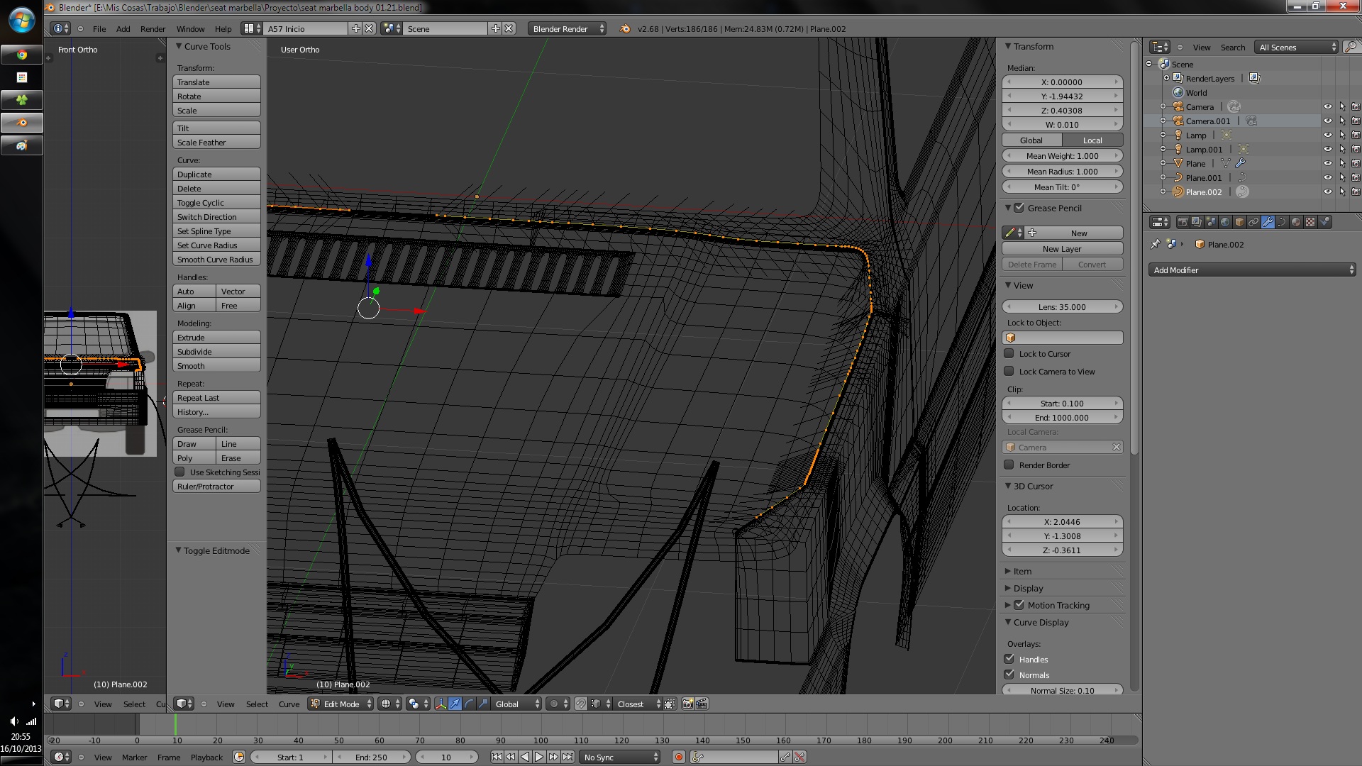 Lo que quiero hacer viene siendo la goma sobre la qué reposa el capot, he pensado en modelar su sección (2ª imagen) y extruir la misma lo largo de la rebaba de la carrocería, pero me gustaría saber si se puede hacer de forma automática, por ejemplo, al estilo de la forma en que se pueden crear tubos usando curvas Bézier.