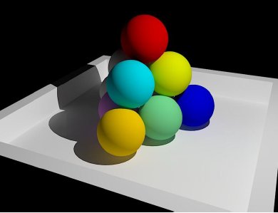 Después de que el render se compleete, puede ver el resultado y guardarlo presionando en la ventana del panel superior y seleccionando imágenes renderizadas. Ahora mire el sutil sangrado en el suelo y en los bordes de todas las esferas. Mire las sombras que no son tan oscuras, gracias a la Iluminación Global (véase el gráfico 5). ¿No es hermoso? Este es el mejor resultado que he visto en un procesador externo para Blender.