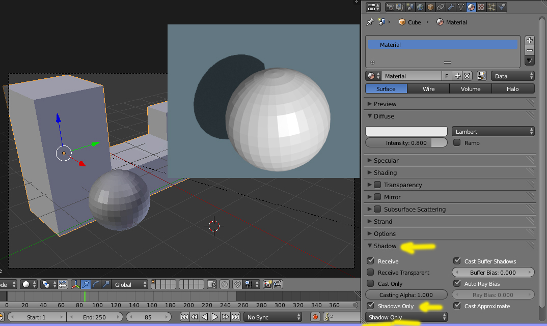 Hola quisiera renderizar una animación con una imagen de fondo en Blender, de forma qué el objeto que está suspendido delante de la imagen de fondo, proyecte una sombra convincente sobre esta imagen como si formara parte de ella, por ejemplo, si modelo un coche y detrás pongo una imagen (una foto) con una carretera, que la sombra del coche se proyecte sobre la carretera con respecto a la cámara. Esto en Maya se cosigue aplicando un material especial a un objeto Shader use background https://www.video2brain.com/es/videos-31207.htm pero no sé cómo se hace en Blender. Agradecería qué alguien me indicara como podría hacerlo, Gracias.