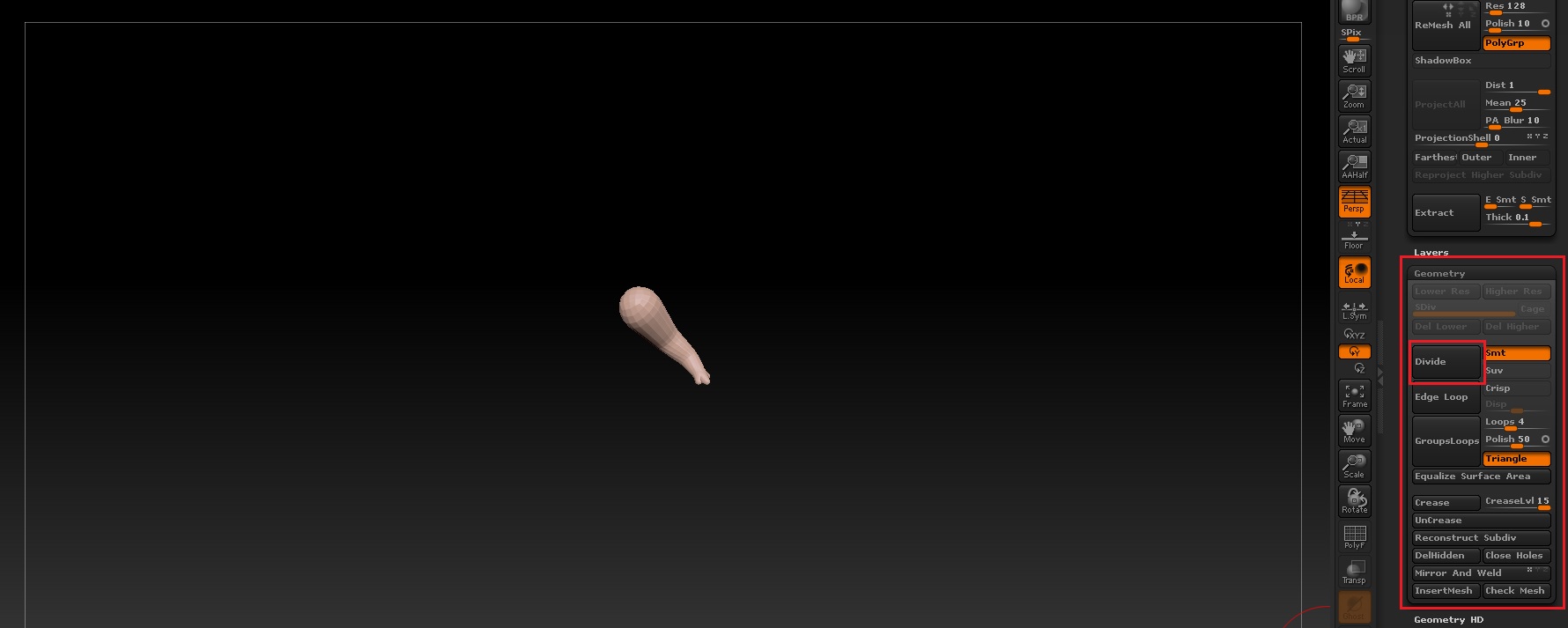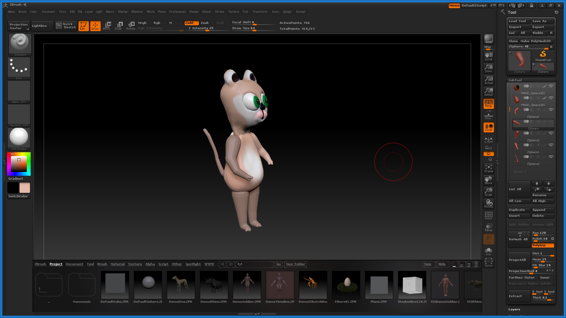 Cuando hice la cabeza y el tronco usé Sphere3D y cuando hice las extremidades y la cola usé Zsphere y luego con la tecla A las deje así, pero me gustaría agregarle polígonos, pero no me deja en la solapa Geometria.