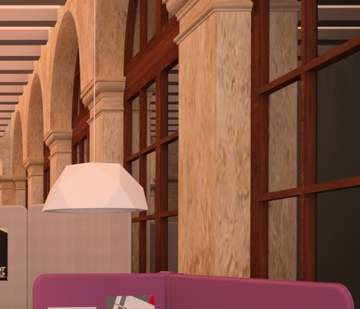 Hola a todos.Hace unos meses rendericé diferentes escenas de un proyecto, en ellos el cristal de las ventana se veía transparente, dejaba pasar la luz, tal y cómo se muestra en la imagen. Se podía ver el exterior.