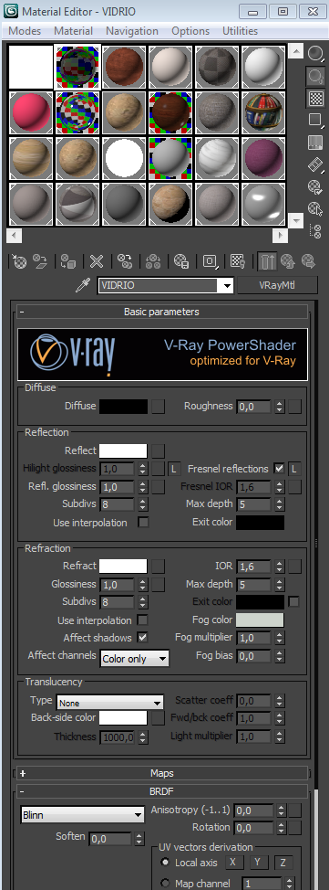 Me gustaría saber por qué puede estar pasando. Adjunto imagen de la configuración del material en v-ray, pero repito que es la misma qué cuando al renderizar el cristal dejaba ver el exterior.