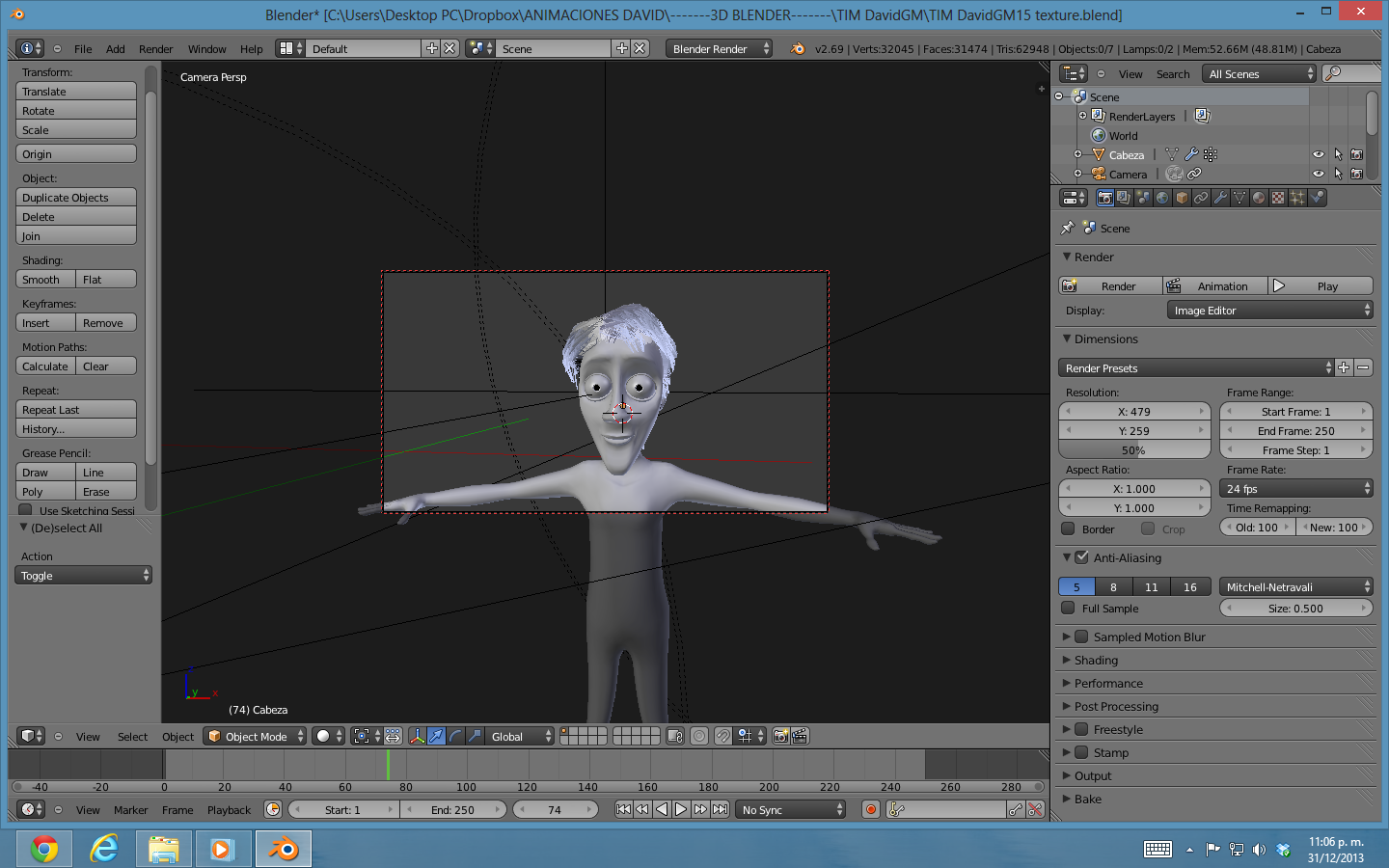 adjunto mi archivo de Blender, para que puedan ver la configuración de las partículas de cabello, a ver si por allí hay algo mal.