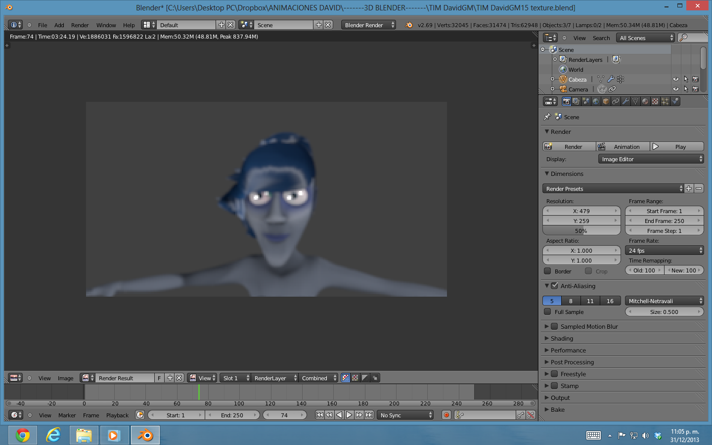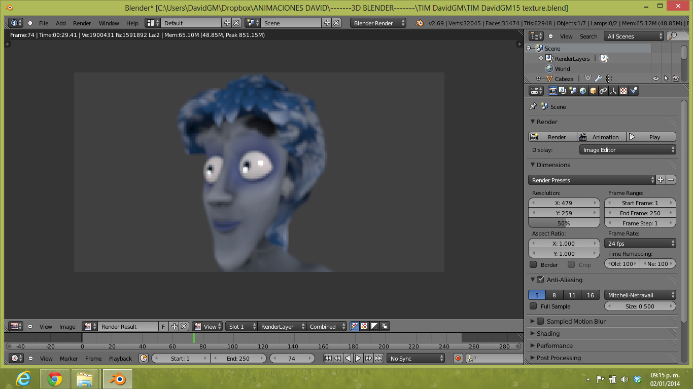 Qué tal, muchas gracias por responder, pero el problema no es ese, yo baje la resolución para renderizar más rapido (Solo para ver el acomodo del Pelo ya renderizado)
