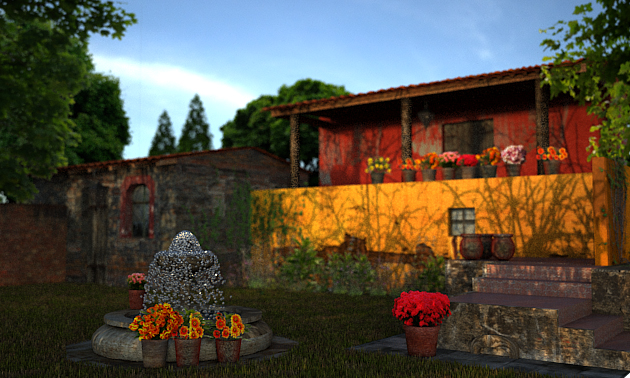 Es una imagen que retrata una casa en el campo, en México. Realizada con 3ds Max, Vray y Adobe Photoshop.