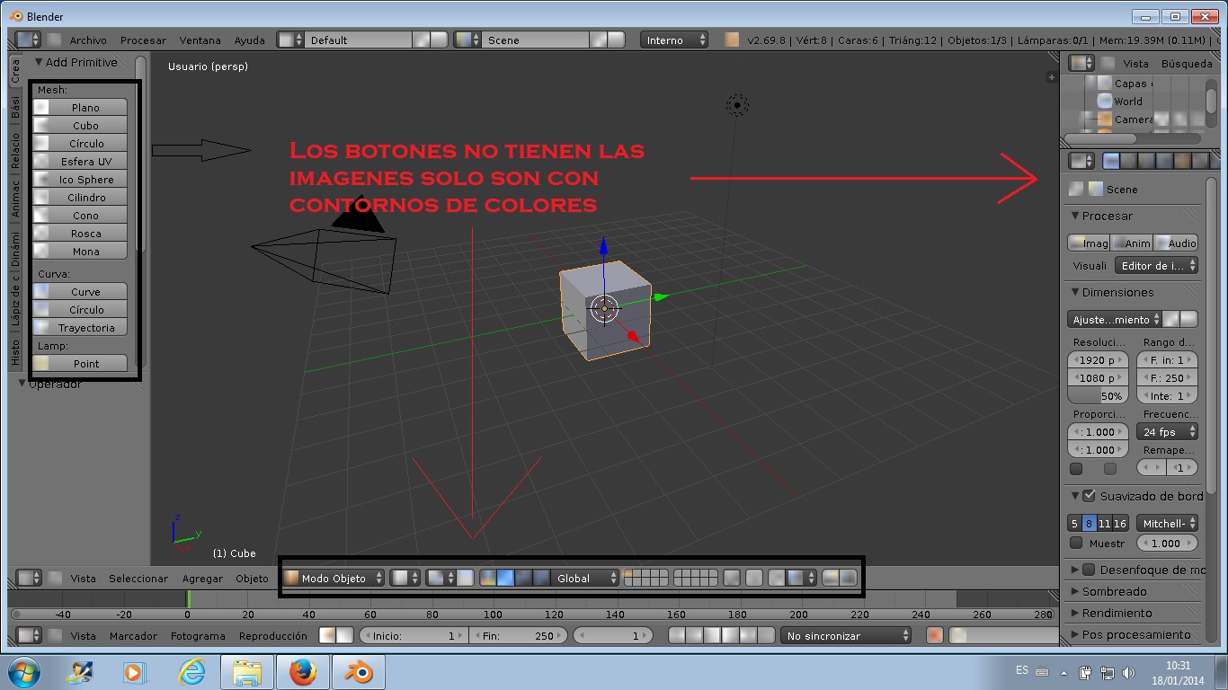 Hola tengo un problema en Blender, es un pasatiempos para mí, venia utilizándolo hace tiempo, pero luego un día entre y todos los botones que deberían de tener los dibujos están con colores, cómo se soluciona.