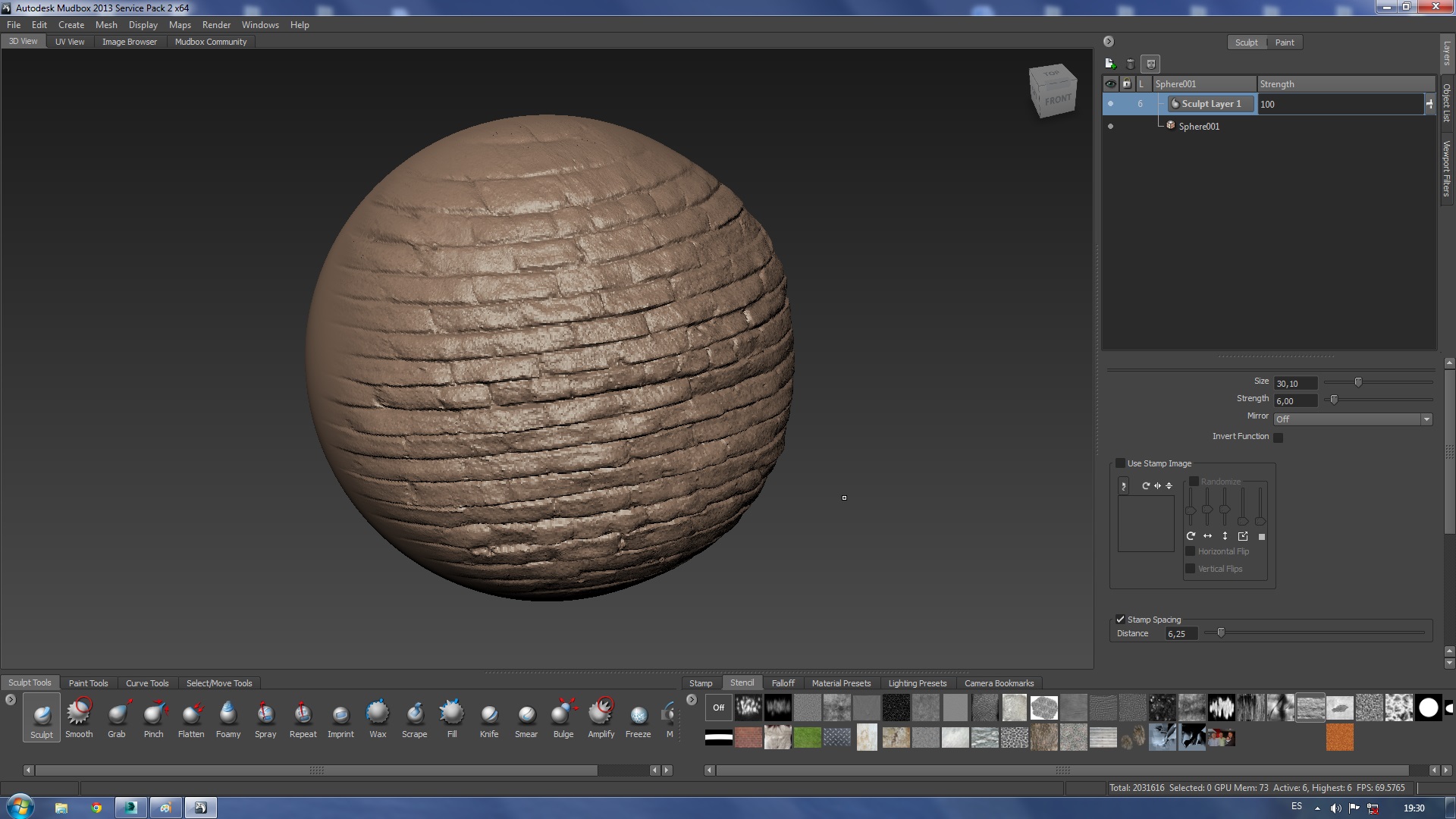 Una vez hagas eso, tendrás tu esfera con 2 valores de subdivisión en Mudbox, y ya desde ahí, puedes añadir más niveles y esculpir a tu modo.