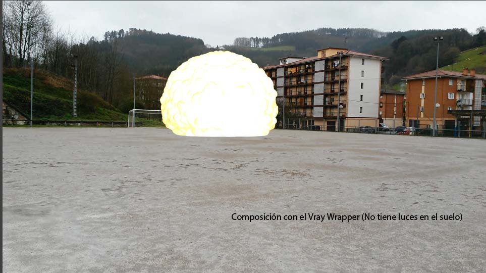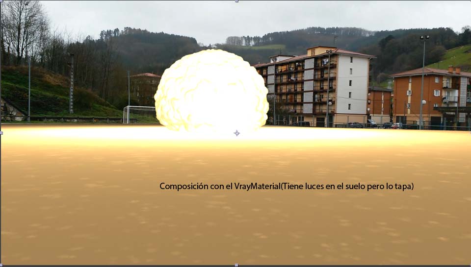 Lo que quiero es exportar la explosión y la luz que hace en el suelo para después superponerla al vídeo (igual que se hace con un MateShadow y las sombras), pero no lo consigo, alguien me puede decir que material tengo que poner al suelo porque no me sale.