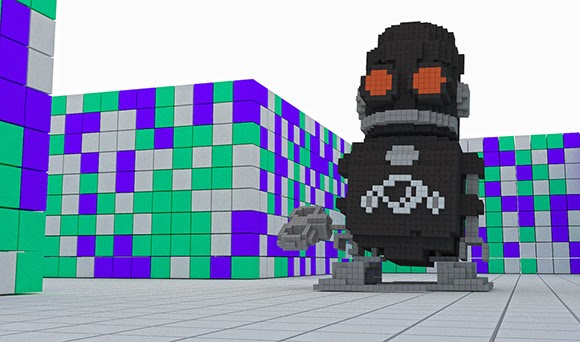 No está mal la explosión de los marcianos. Aunque le daría más fuerza a la explosión. Más dinamismo, igual animando los materiales de los cubos.Qué bueno el MagicaVoxel open source de voxel, codeplex.com.