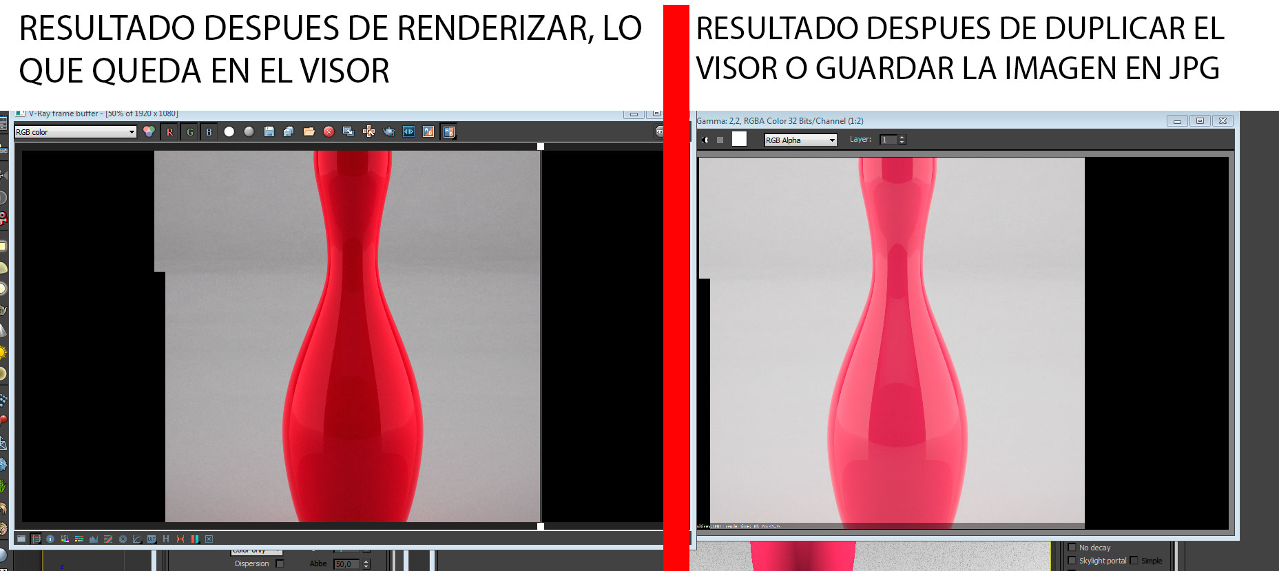 Después de renderizar la imagen que queda en el visor no se corresponde con la qué aparece al duplicar el visor o guardar como jpg. Gracias por vuestro tiempo.