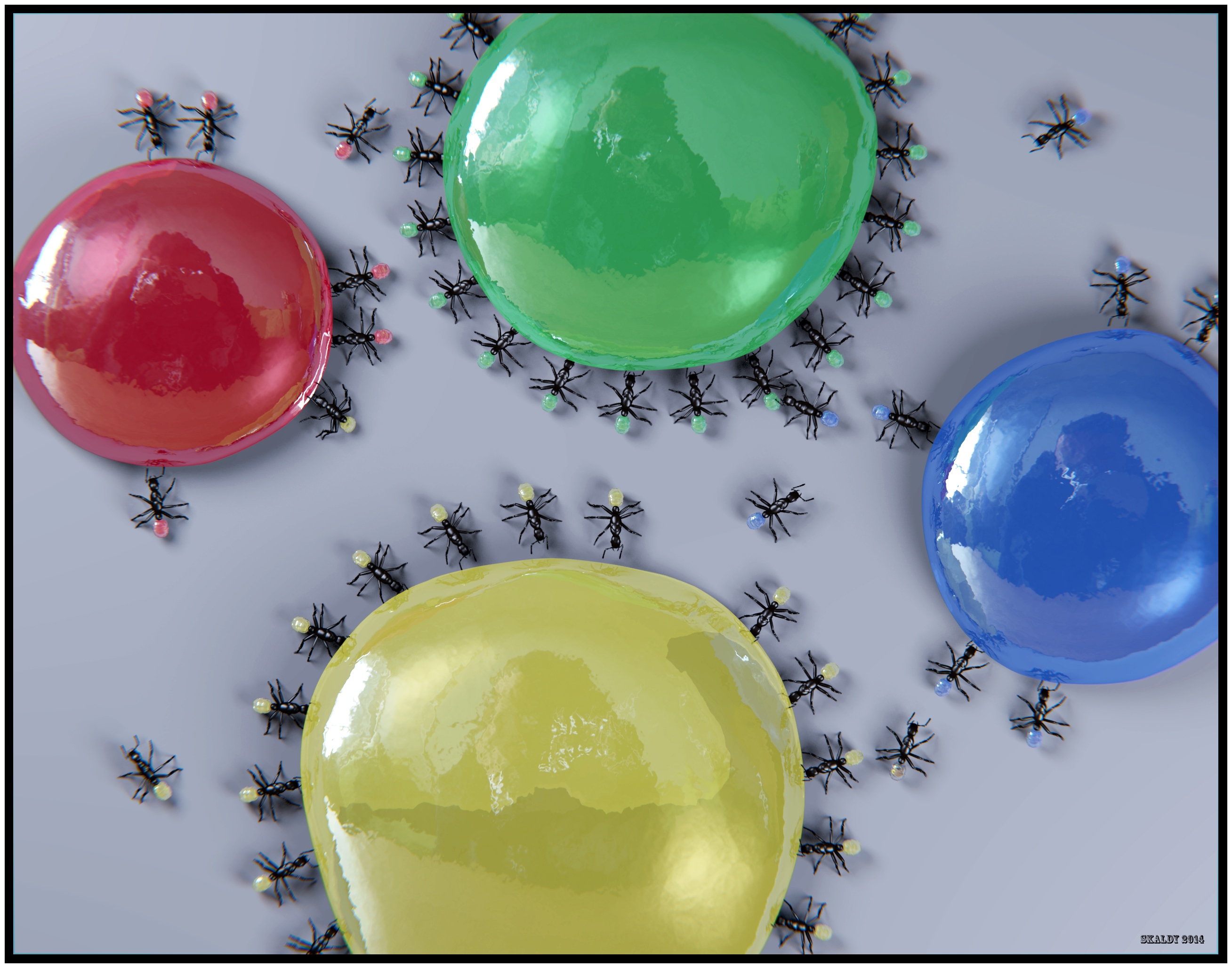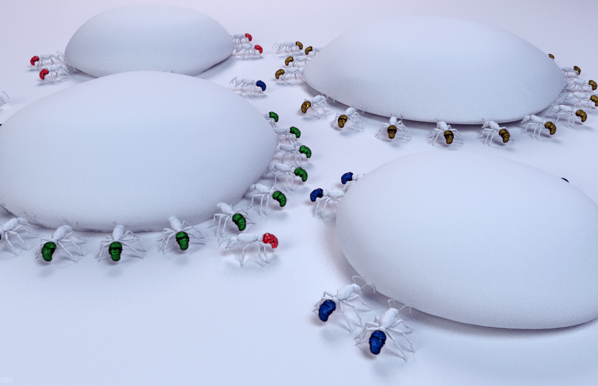 Dejo un render sobre un experimento de hormigas y gelatina de colores, que visualmente queda bastante chulo.