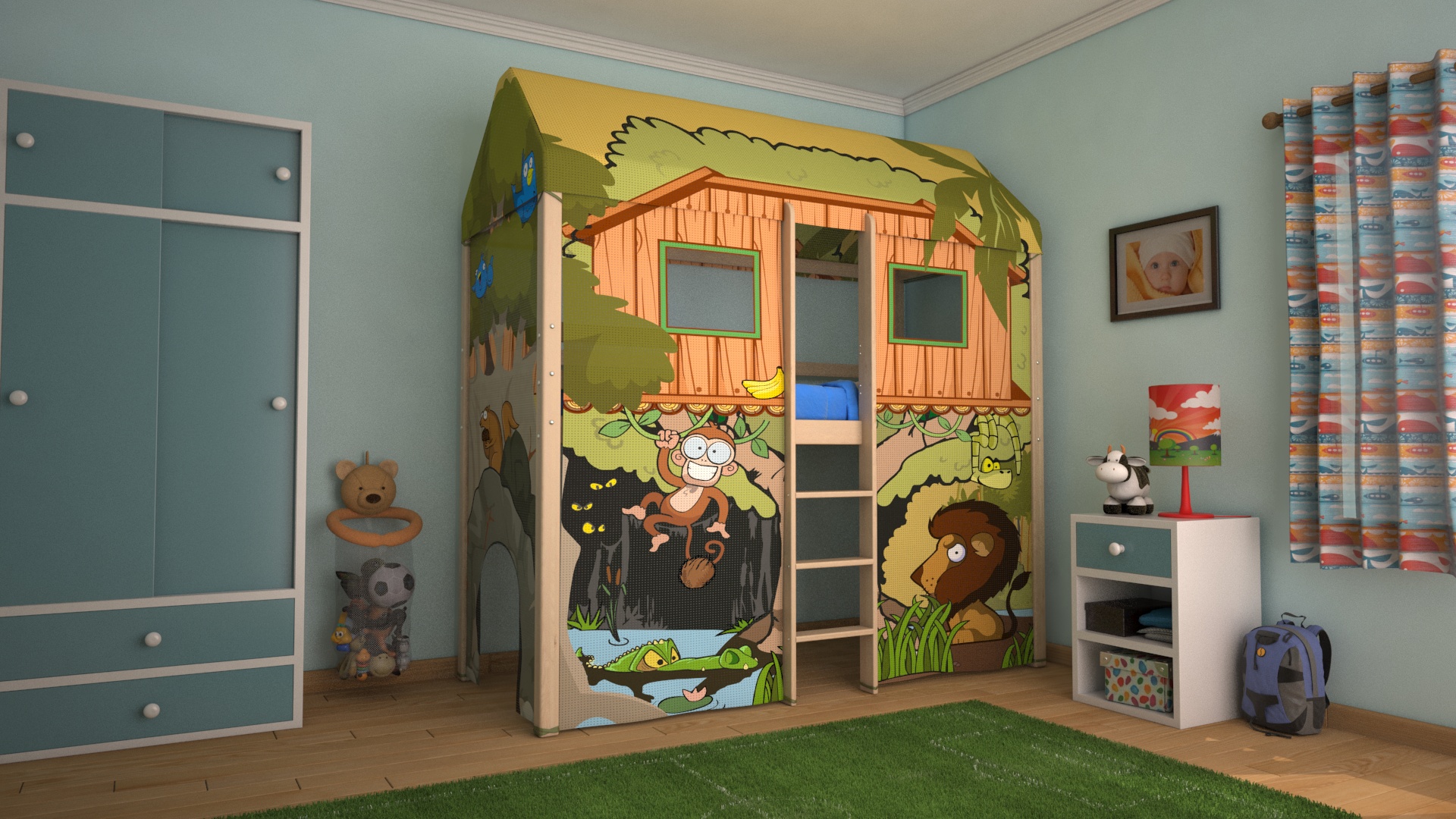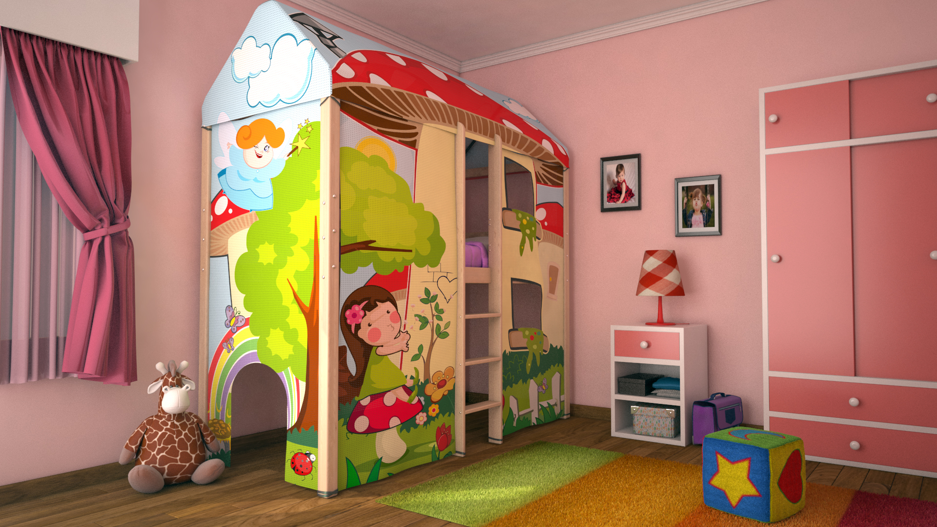 En esta composición incluí algunos componentes de galerías (mochila, bolso de juguetes y vaca de peluche) para completar una escena qué me parecía algo vacía, mis tiempos eran acotados porque debía terminar el render para mostrarlo a un amigo interesado en fabricar la cama qué aparece en el mismo.