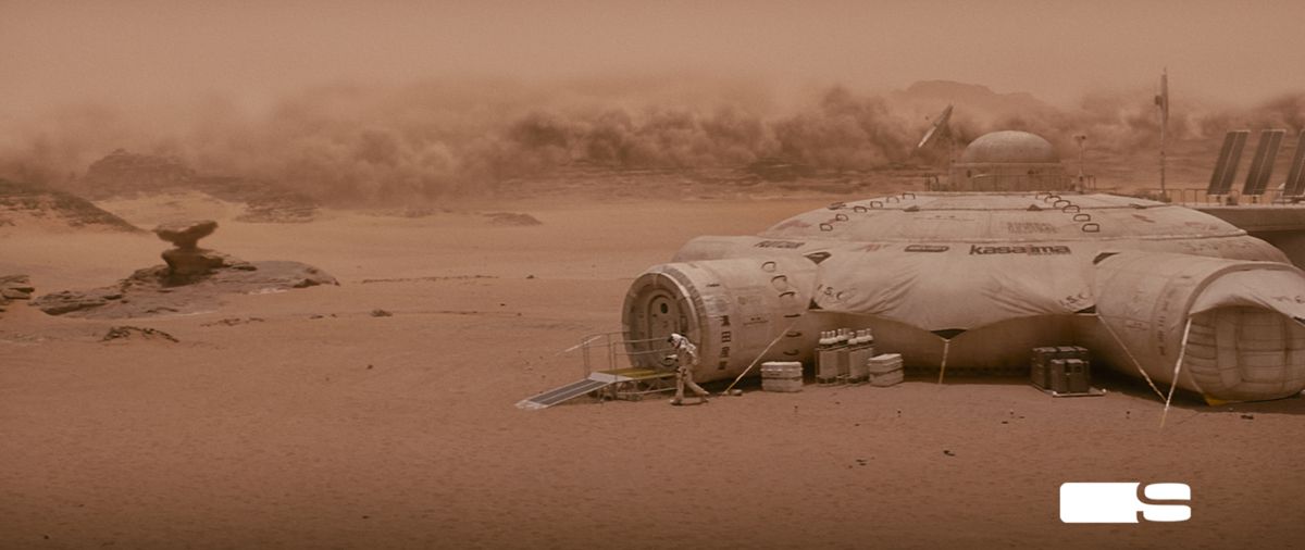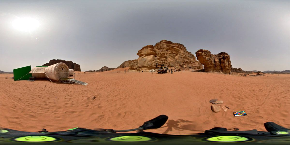 En el set : El paisaje marciano de la película fue tomado a través de la localización en el desierto de Wadi Rum, en Jordania. Aunque se remplazo el cielo y hubo más trabajo digital que se llevo a cabo para la puesta en pantalla de la escena, un requisito adicional e inesperado era eliminar las nuevas torres de energía qué se habían instalado en estas localizaciones.