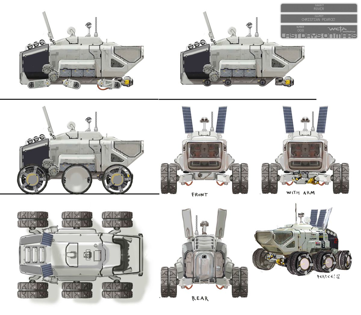 Las escenas de la pantalla se basaron en la cabina como referencia en la extensión del Rover como vehículo CG. Un reto importante para los artistas era adaptar la distancia entre ejes con el diseño del Rover al agregar la extensión. La suspensión del camión reacciónó a un terreno muy diferente a lo que se podía prever, teniendo en cuenta la distancia entre ejes del vehículo.