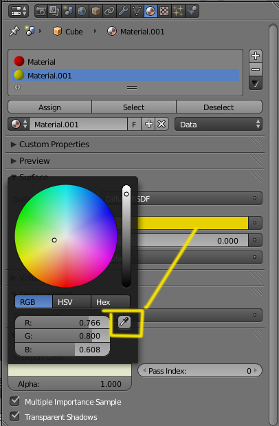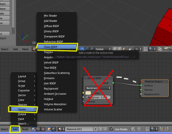 Y enlazas los dos pinchando sobre la bolita verde de un nodo al otro (de BSDF a Surface).