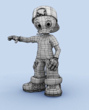 Busque fotografías del trío de patos en la red. Louie era quien más representaba para mí como debía ser un adolescente, así que, decidí elegirlo a él. No podía encontrar blueprints de frente ni de lado, y para ser honesto, soy muy perezoso para dibujarlos por mi cuenta. Así que decidí empezar con lo que tenía a mano. La cabeza comenzó como un simple cubo, subdividido dos veces y convertida en esfera usando la herramienta To Sphere en los botones de edición (F9). Luego hice las cuencas de los ojos sacando un par de caras hacia afuera. El pico fue modelado polígono a polígono comenzando desde un simple plano. La camiseta, pantalones y gorro fueron modelados empezando con círculos, entonces los saqué, moviendo y haciendo merge, vértices, como fuera necesario. Luego agregue loops cortos Ctrl+R a la camiseta y los pantalones y moví los vértices para crear los pliegues y arrugas. Para modelar las manos, comencé de los dedos hacia atrás. Luego la duplique y agrandé, borre los dedos formar un guante.